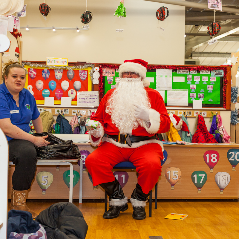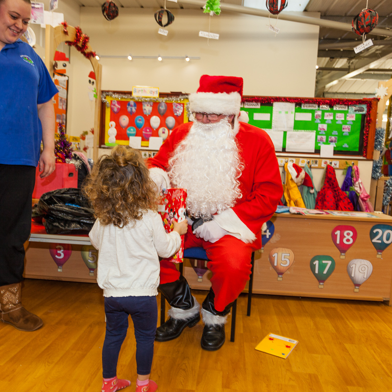 Father Christmas came to Treetops nursery for Alana's Christmas Party - Le Père Noël est venu à la crèche d'Alana pour lui donner un petit cadeau
