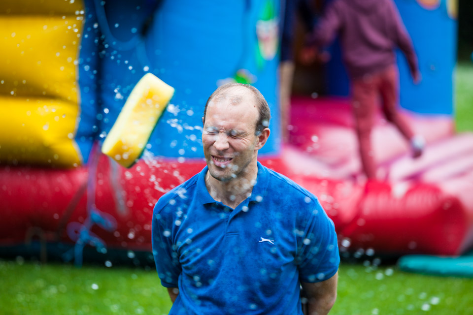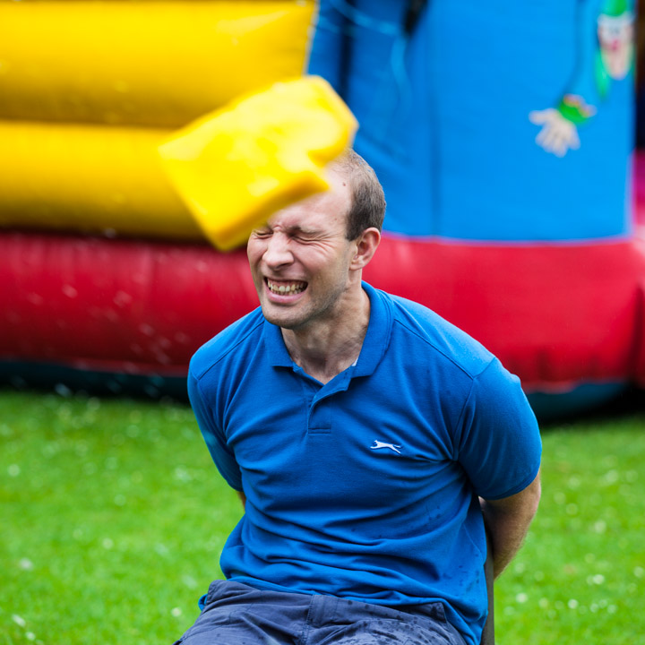 Tim Hoskins bravely facing the sponges...
