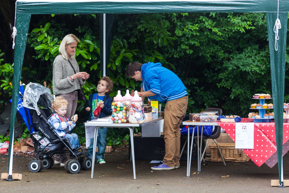 Rhys at the cake sale and tombola