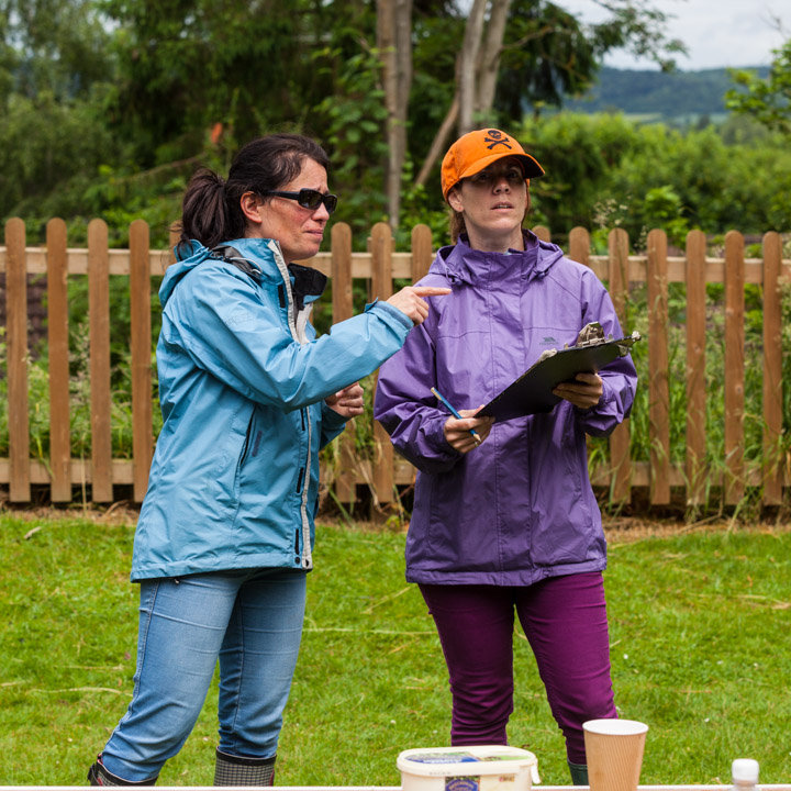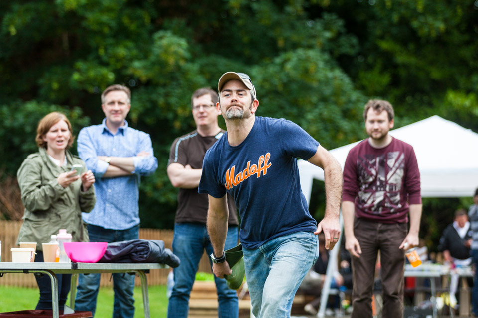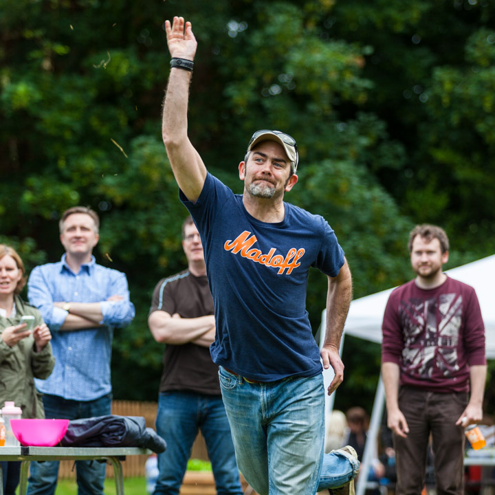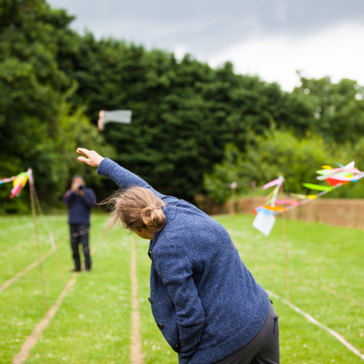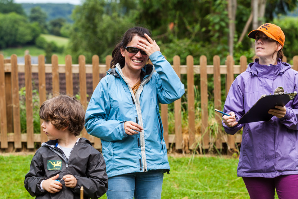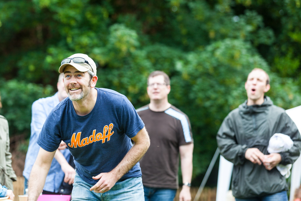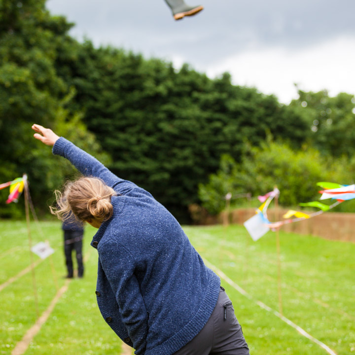 Jess and Oscar getting wet at the Wellie wanging...