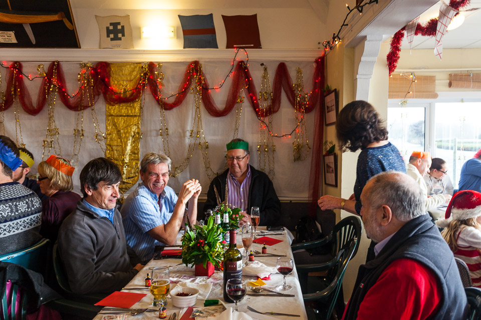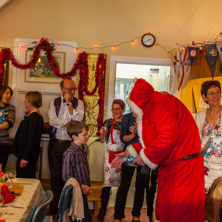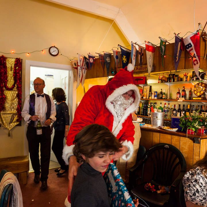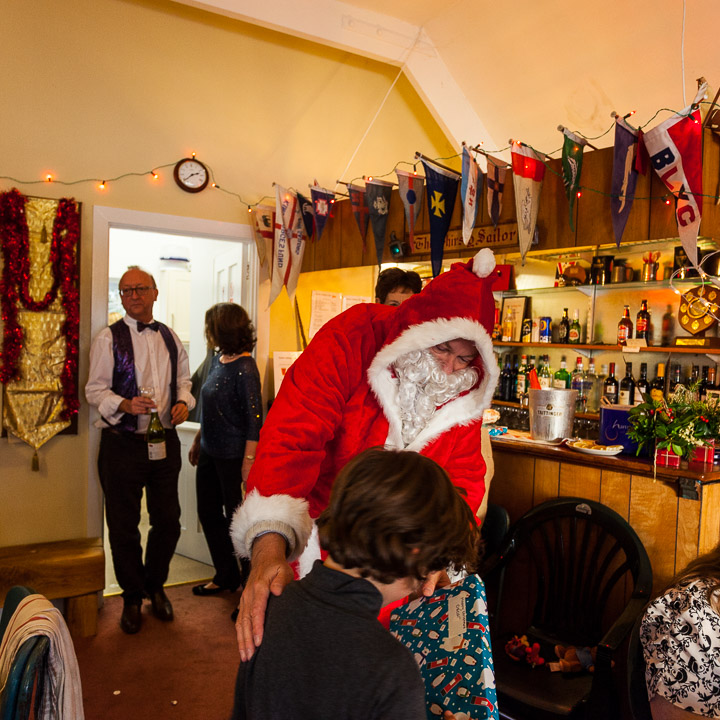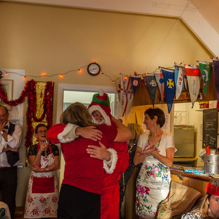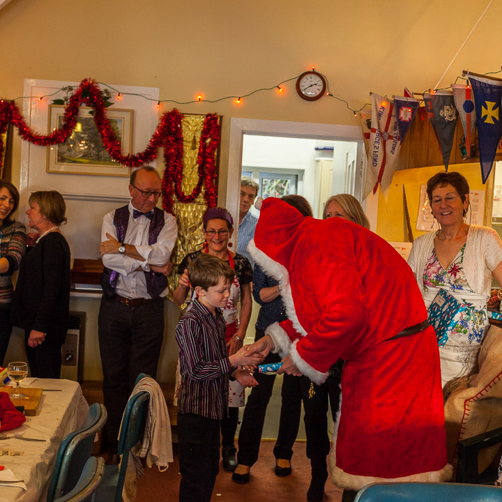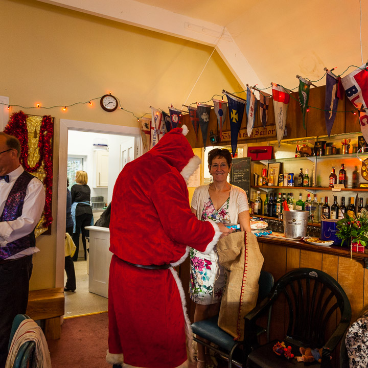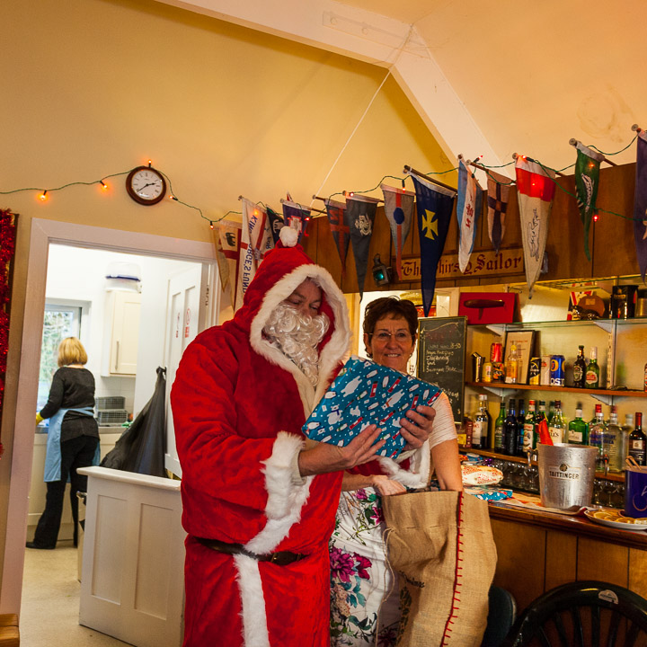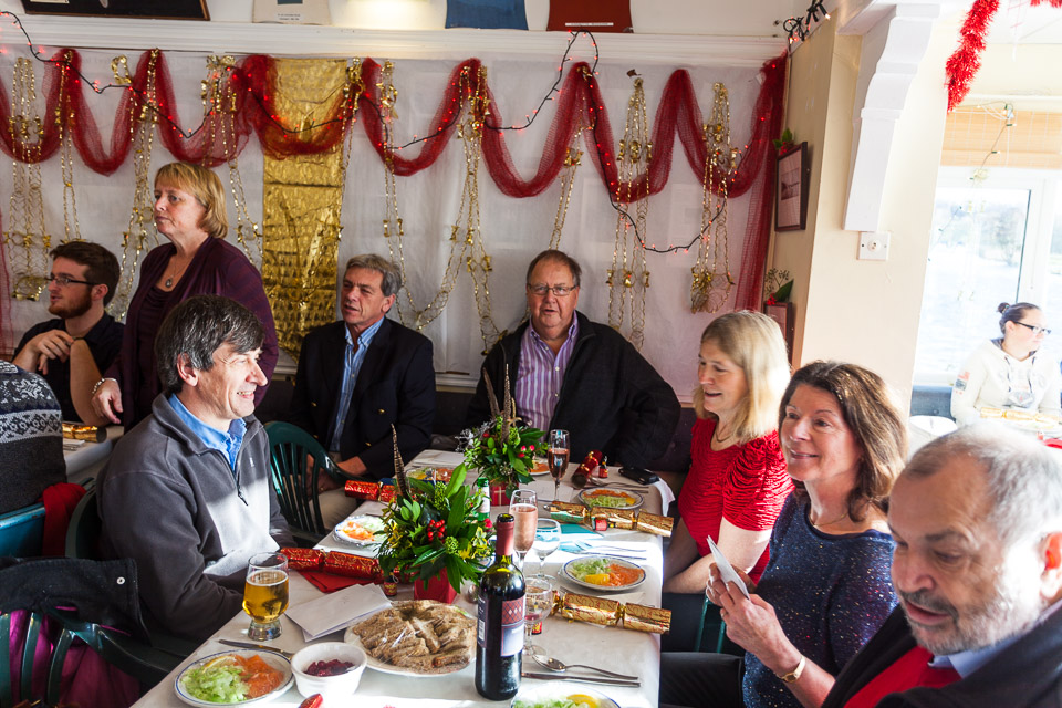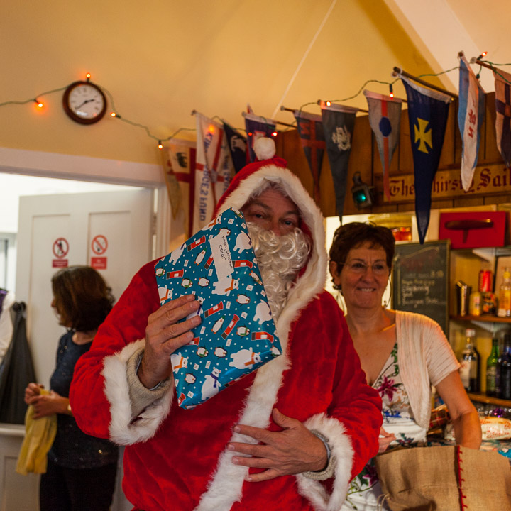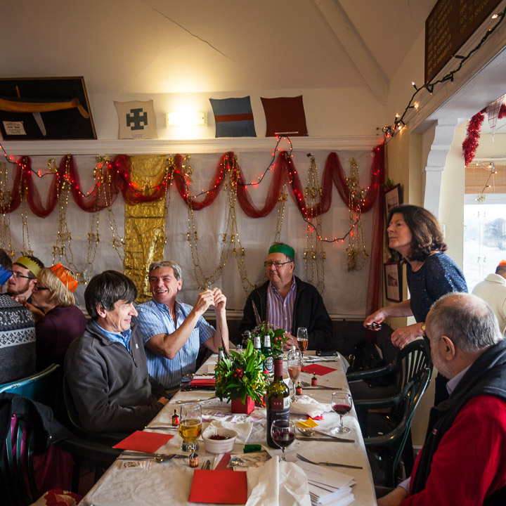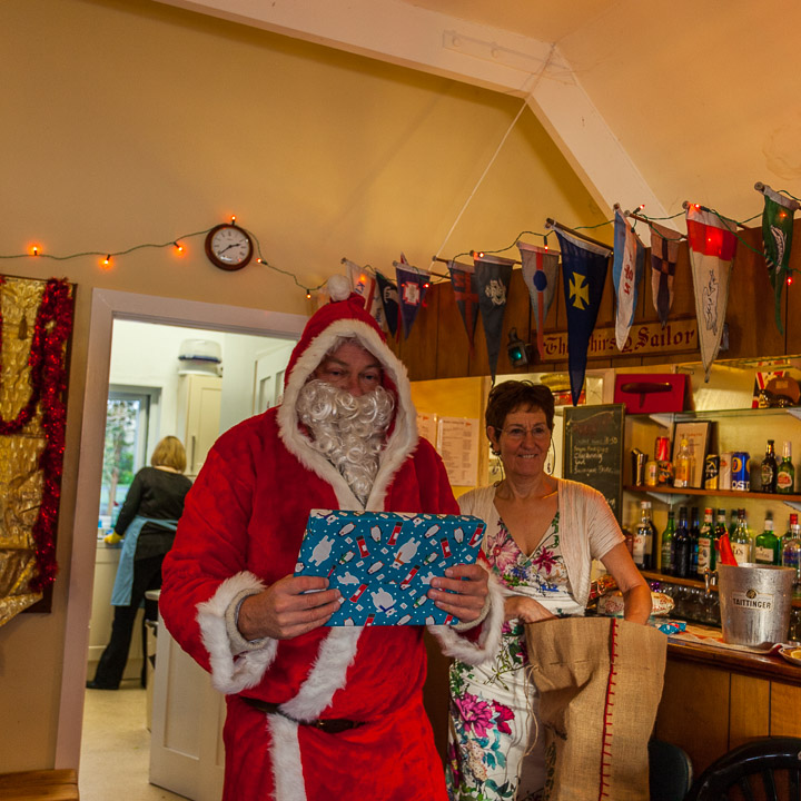 Henley Sailing Club Christmas Party at the club by the River. About 75 people turned up for this great meal and Santa arriving on a boat with a drunk driver was extremely funny...