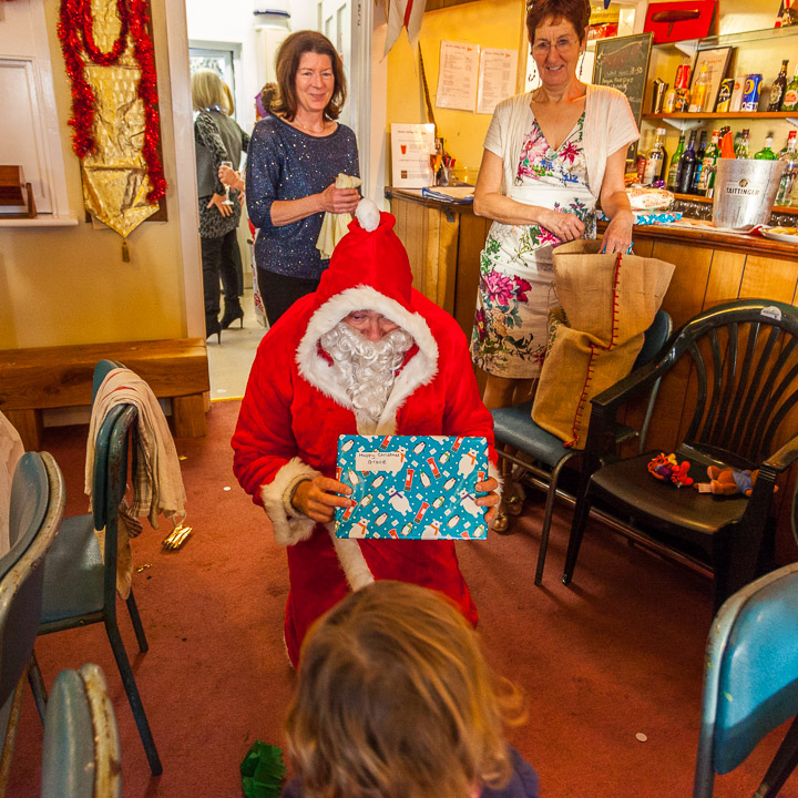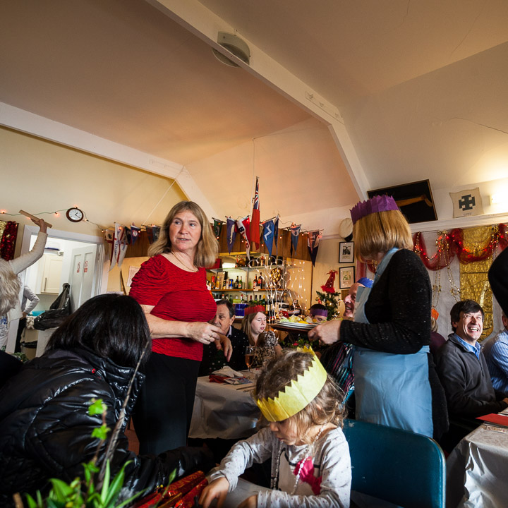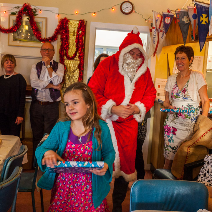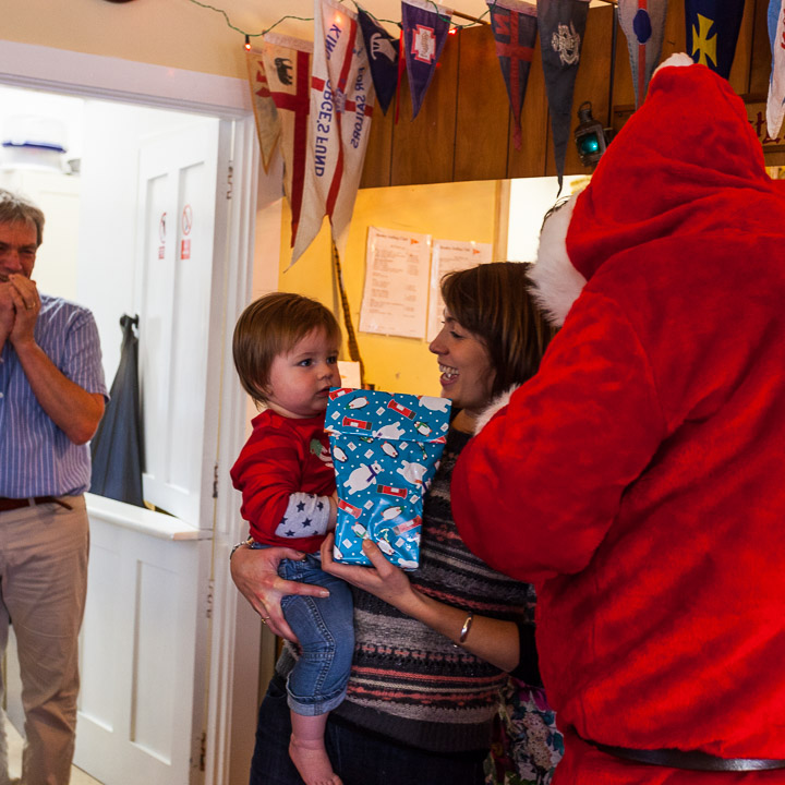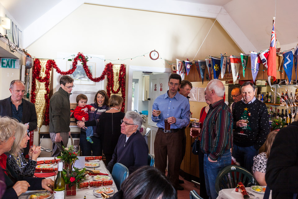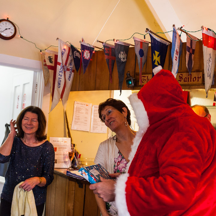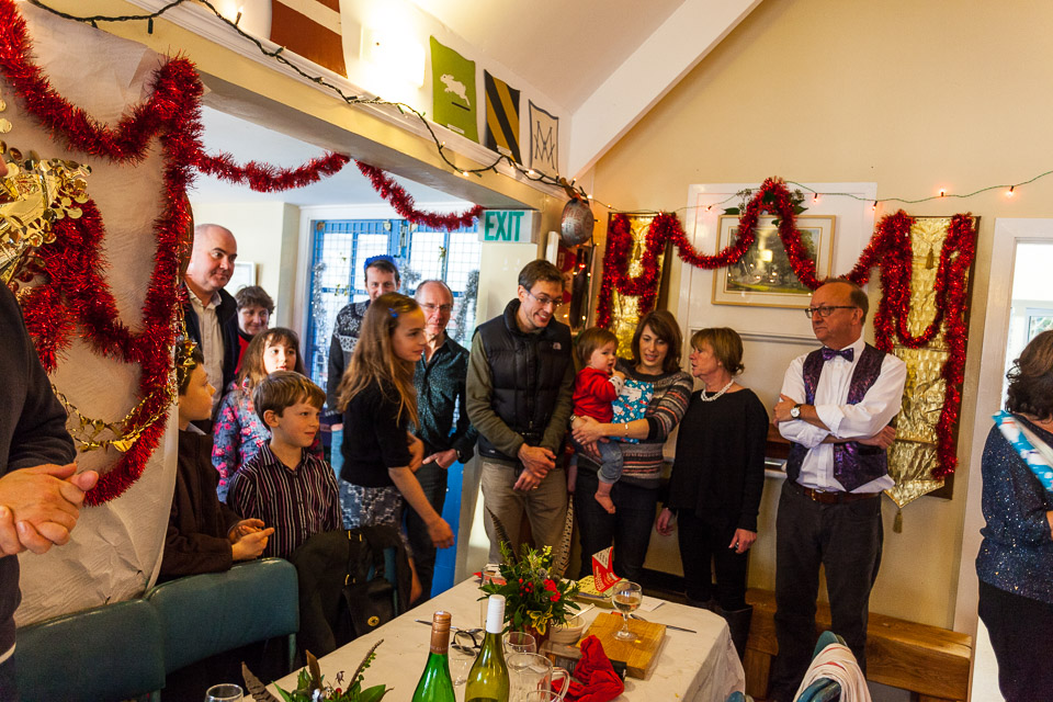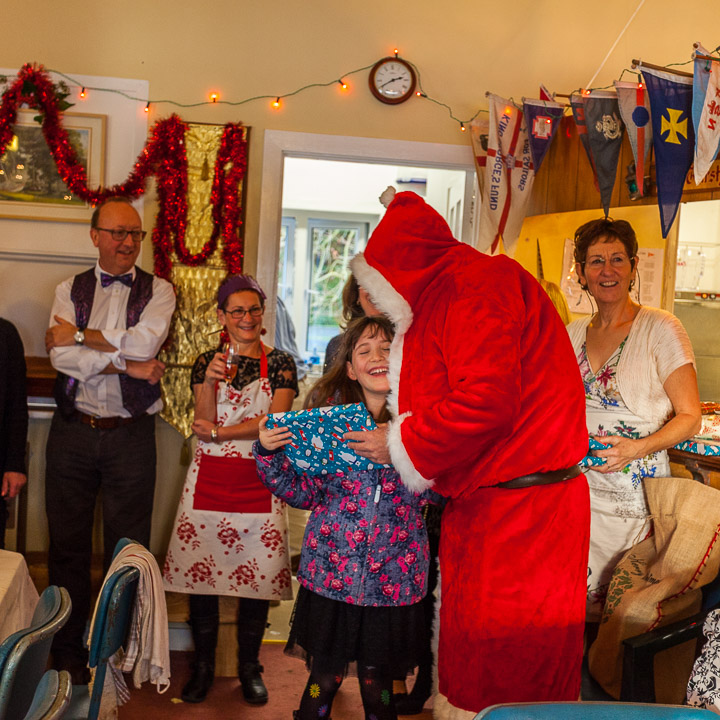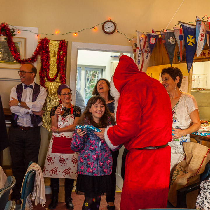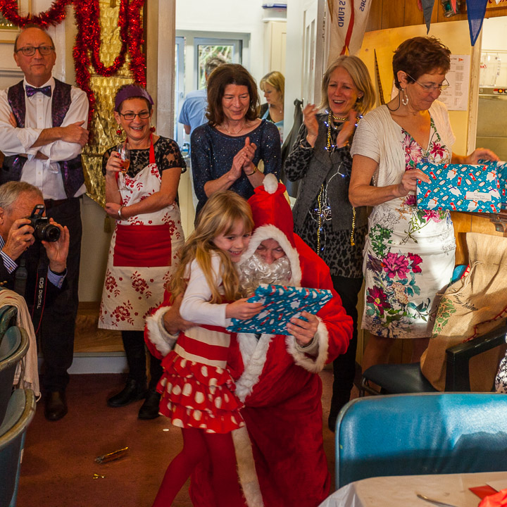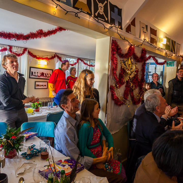 Henley Sailing Club Christmas Party at the club by the River. About 75 people turned up for this great meal and Santa arriving on a boat with a drunk driver was extremely funny...
