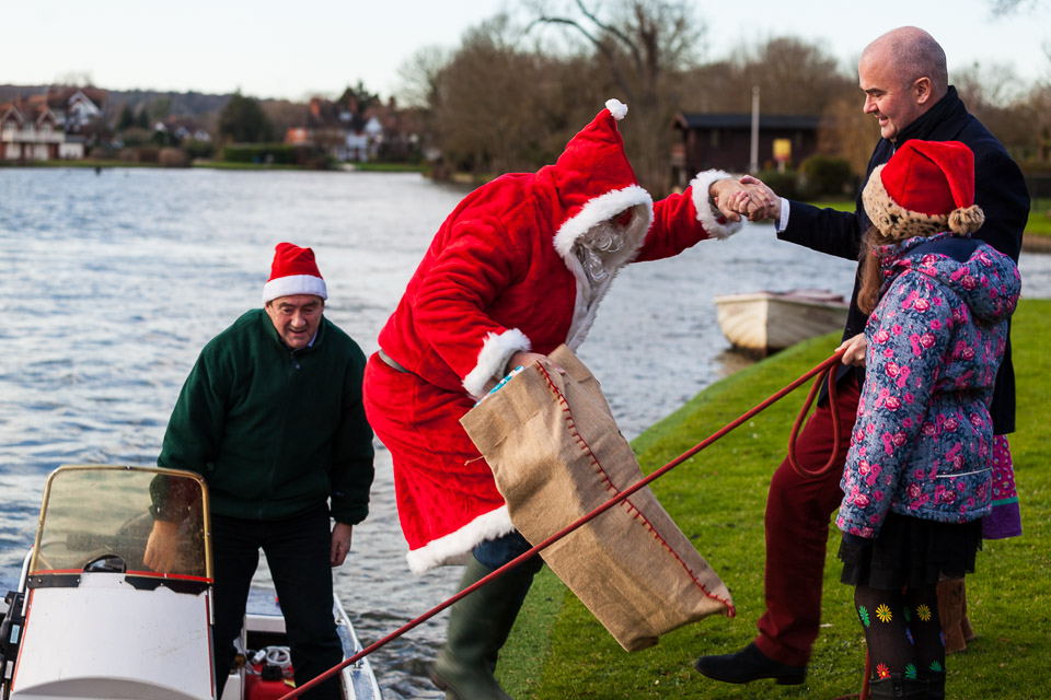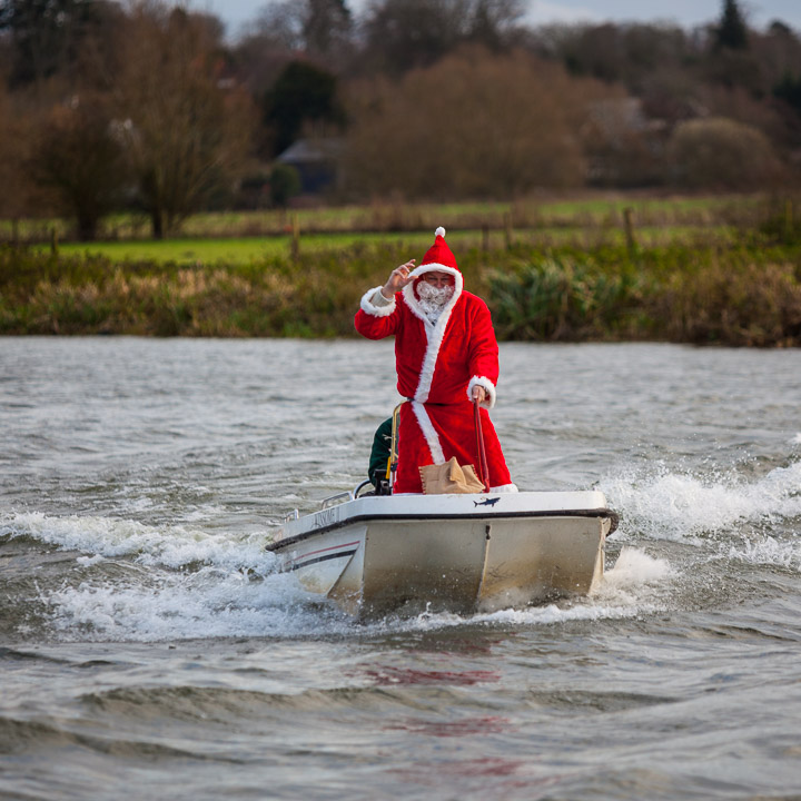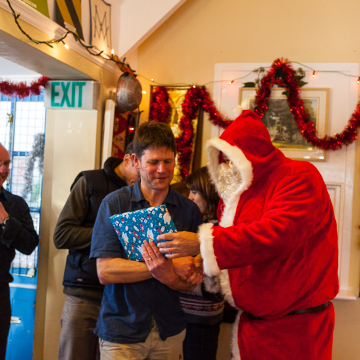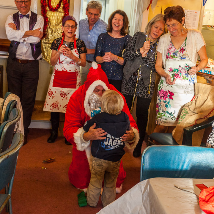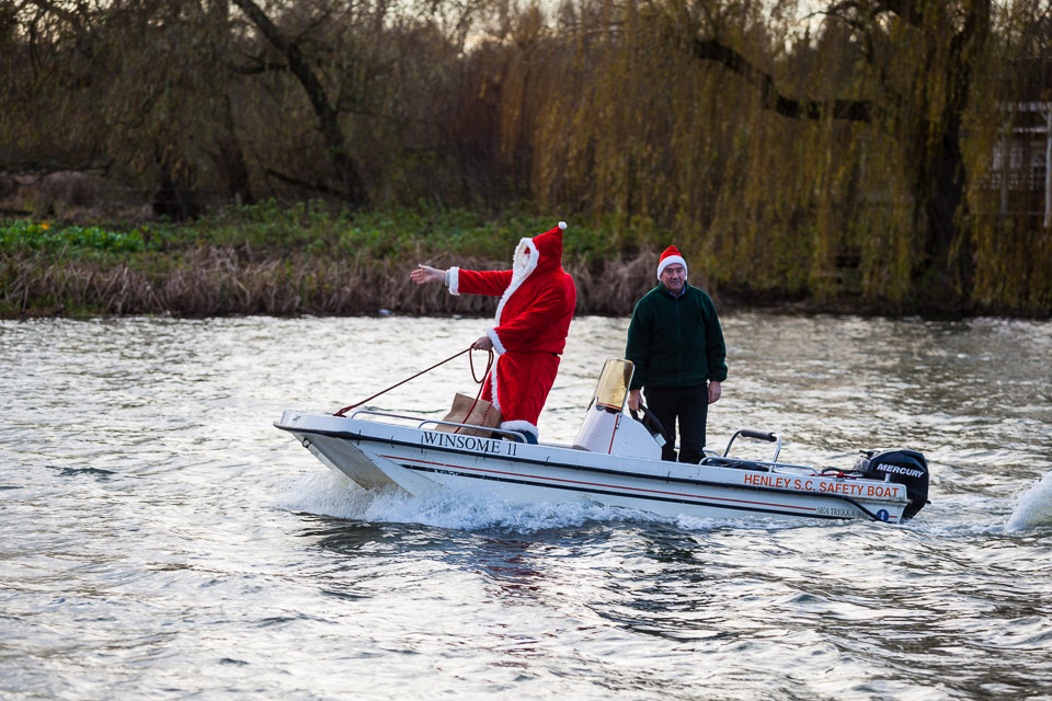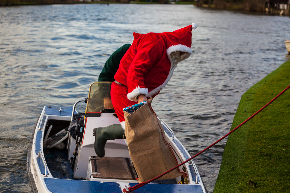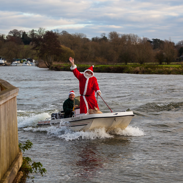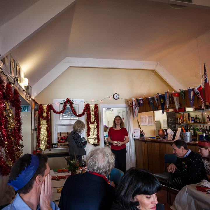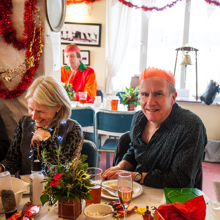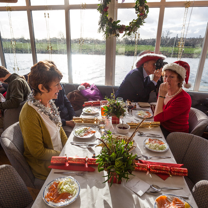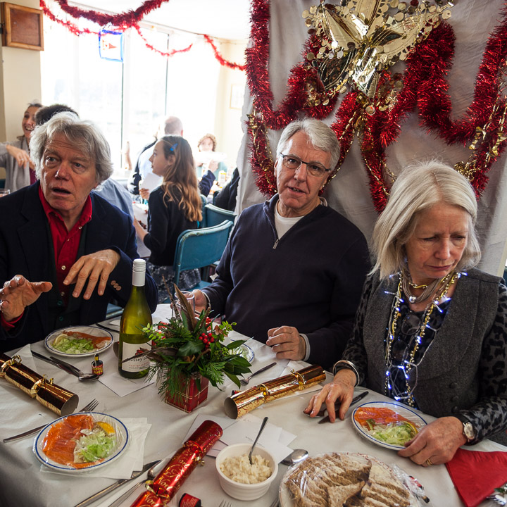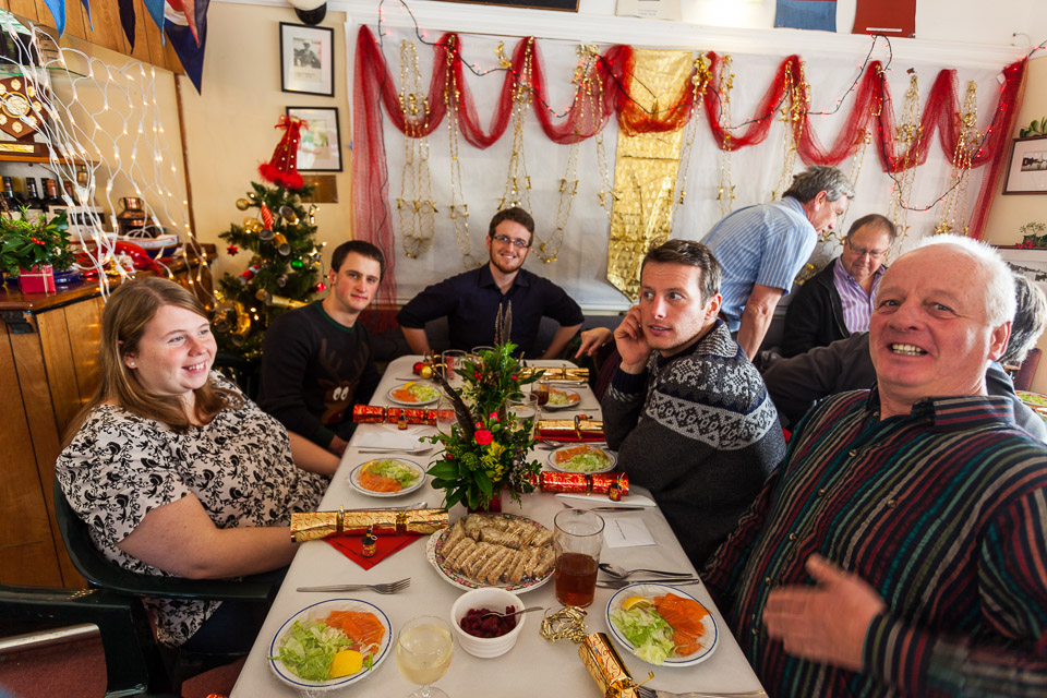 Henley Sailing Club Christmas Party at the club by the River. About 75 people turned up for this great meal and Santa arriving on a boat with a drunk driver was extremely funny...