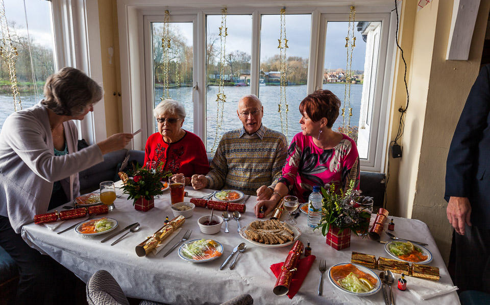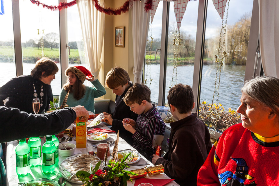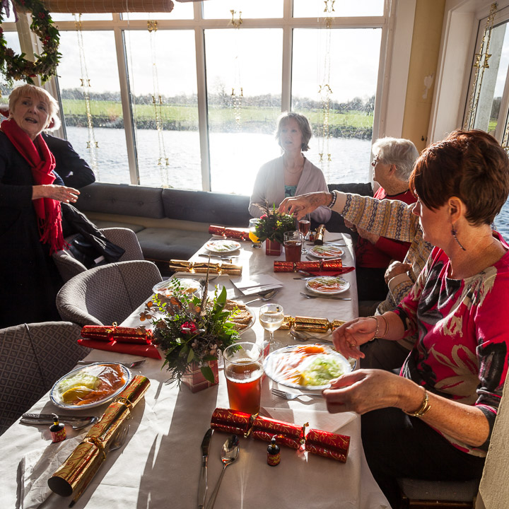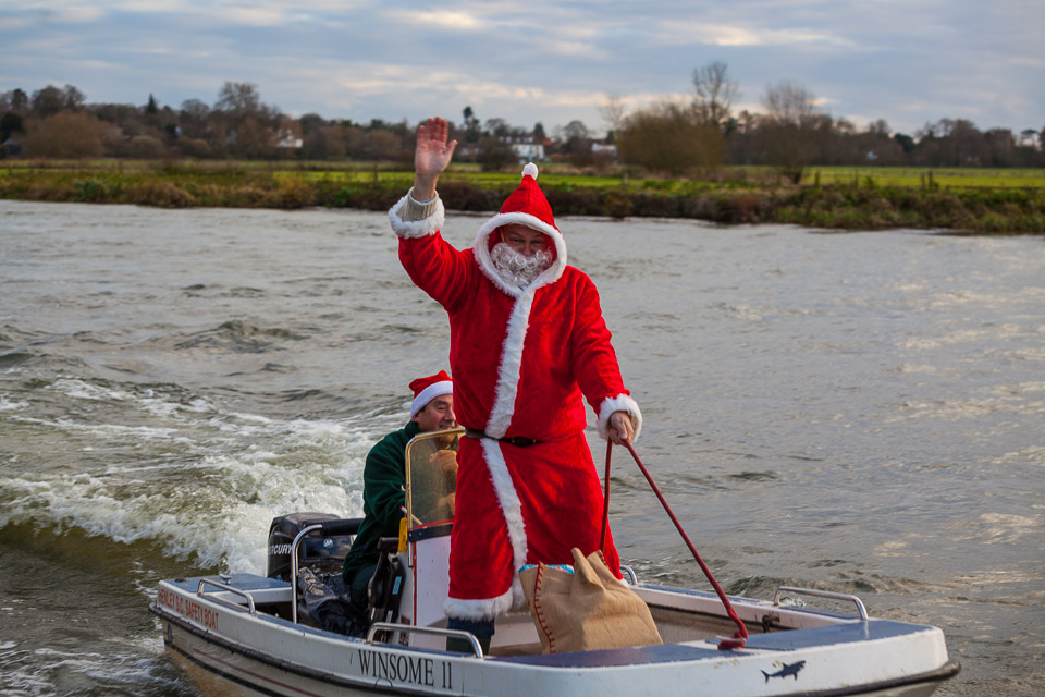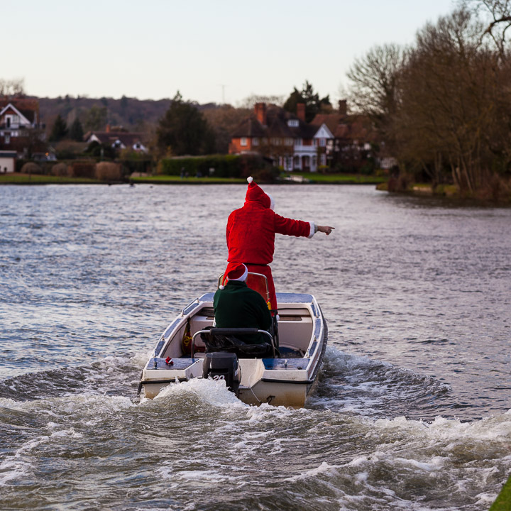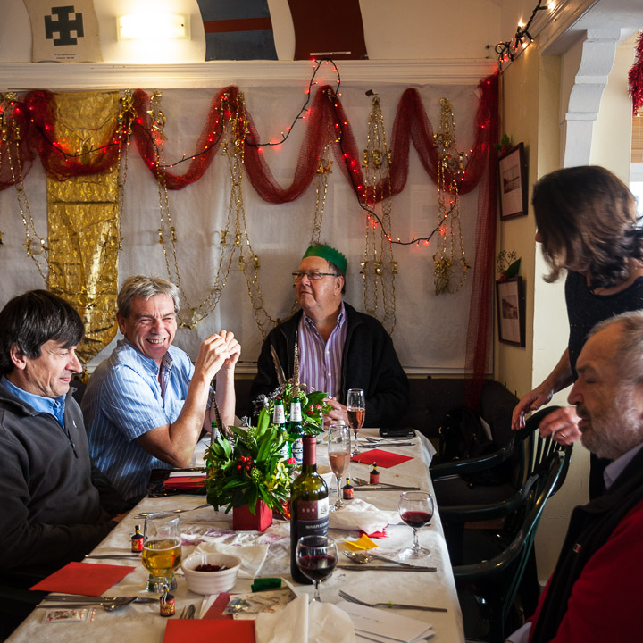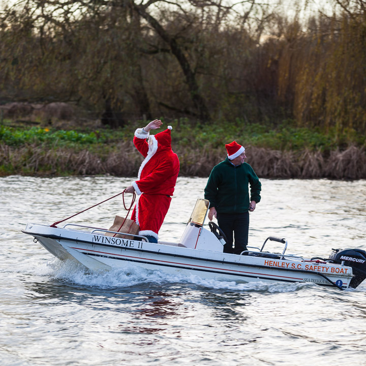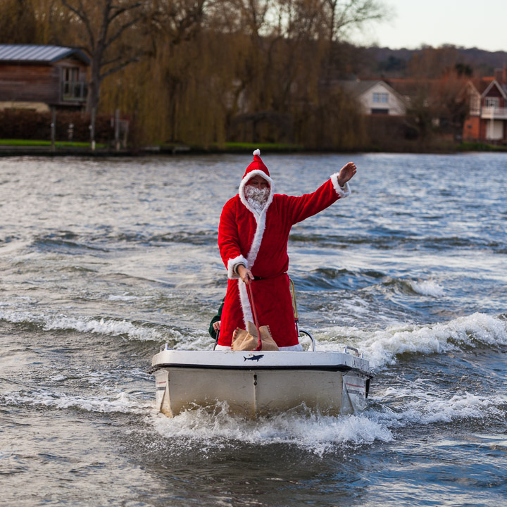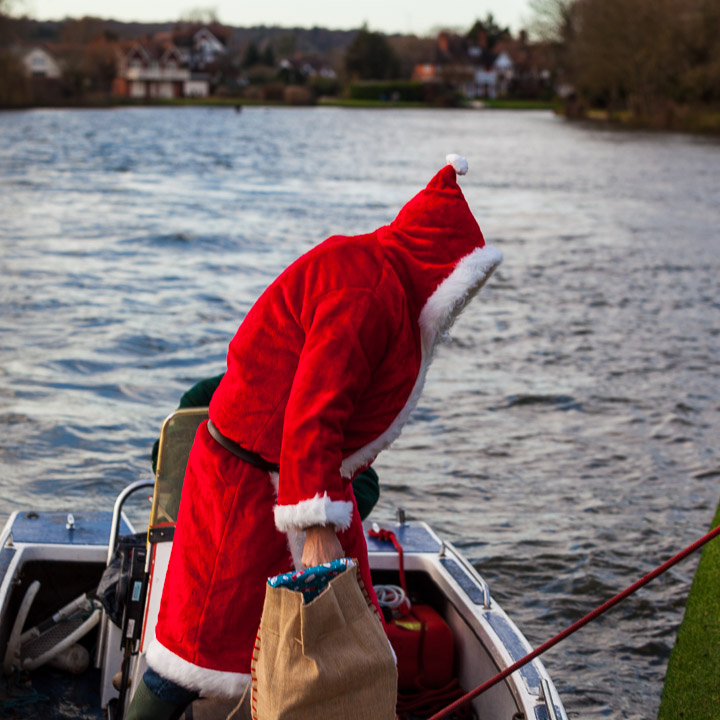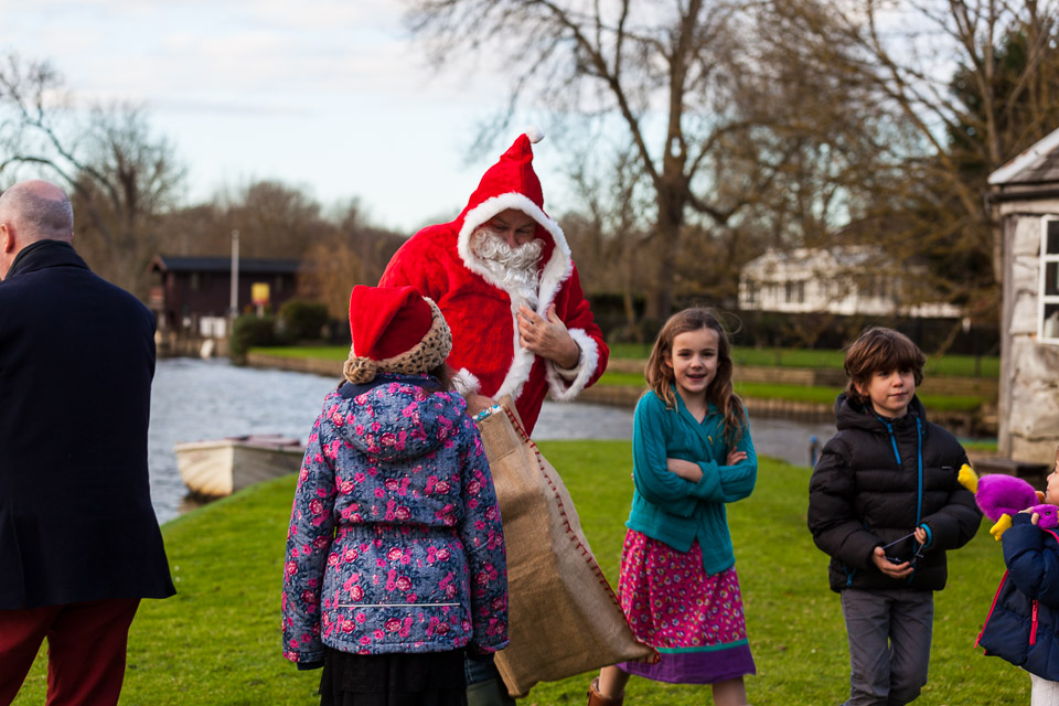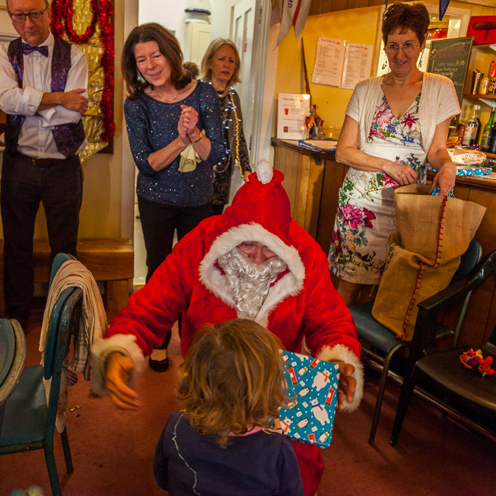 Henley Sailing Club Christmas Party at the club by the River. About 75 people turned up for this great meal and Santa arriving on a boat with a drunk driver was extremely funny...