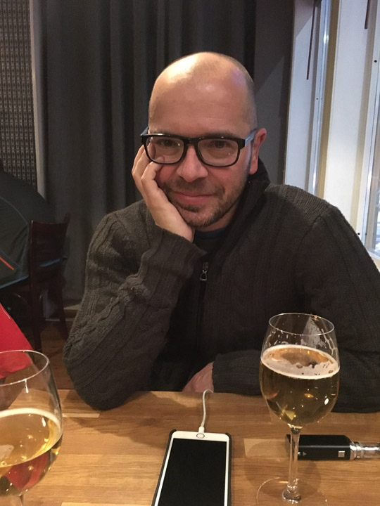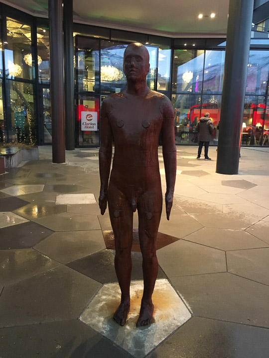 week-end in Tromso. Statue of Anthony gromley in front of an hotel.
