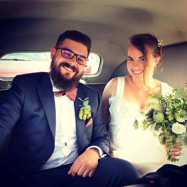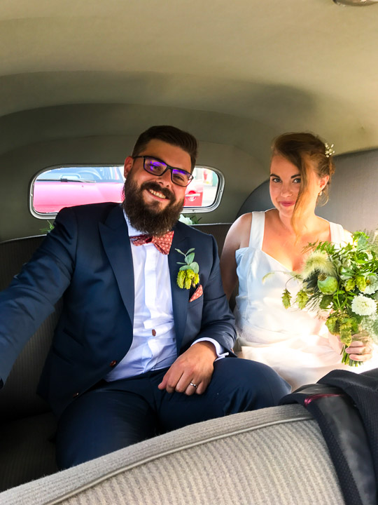 Theo and Flavie in the car